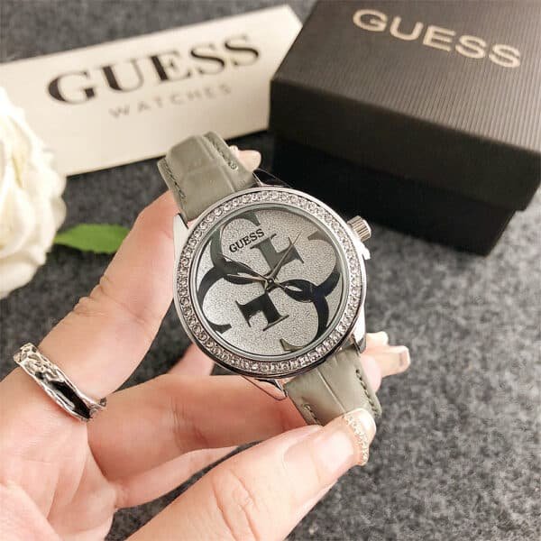 Reloj Guess con correa de cuero genuino, diseño sofisticado y versátil para complementar cualquier estilo con elegancia.
